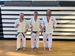 Grading[ GRADING ] Congratulations to our new Dan grades Congratulations to Caan Thomas (left) for gaining Nidan, and to Craig Deans (middle) & Jason Guest (right) for gaining Sandan grades on 12 October 2025.